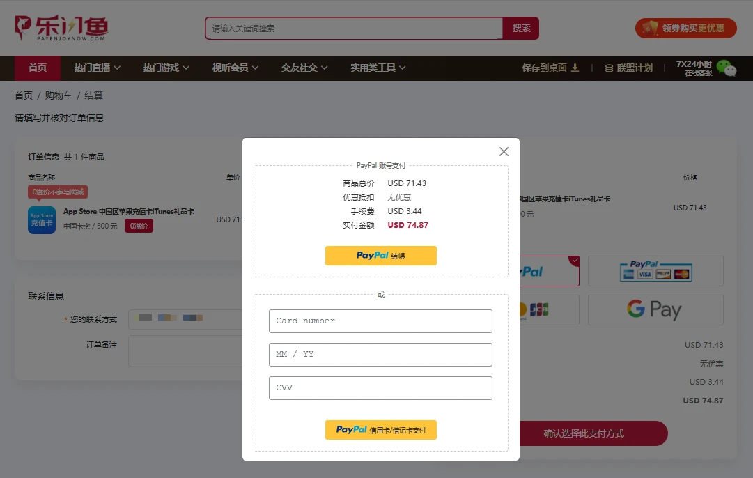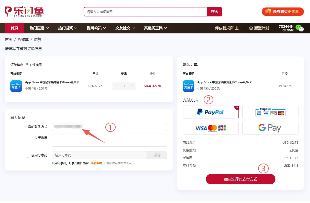 在结算页面核对商品信息、单价与数量,准确填写您的联系方式,并选择适合您的付款渠道。