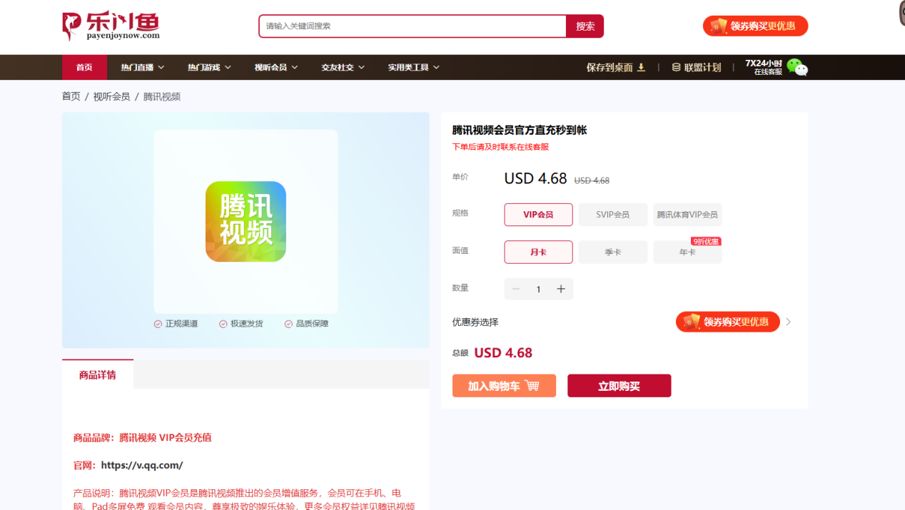 https://www.payenjoynow.com/goods-audiovisual-members/tencent-video-recharge.html